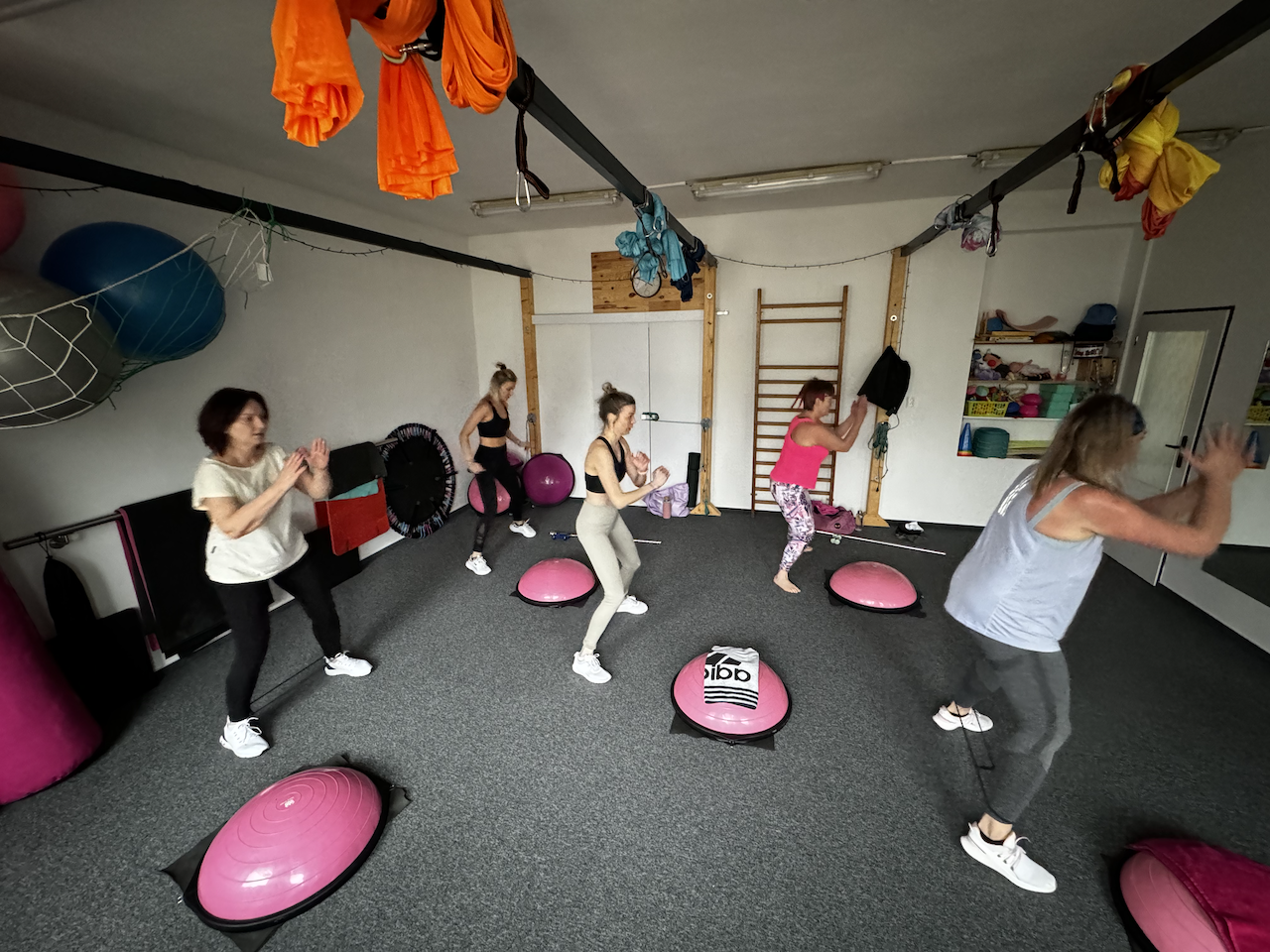 Dynamická kardio aktivita zaměřená na získání kondice a posílení celého těla. BOSU Cardio přispívá k celkovému držení těla, posílení pánevního dna a odstranění svalových dysbalancí. Cvičení BOSU Cardio je vhodné pro všechny generace, pro začátečníky i pro pokročilé. Při tomto cvičení nejen že spálíte přebytečné kalorie, ale také celkově posílíte a zpevníte postavu.